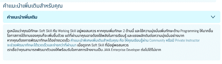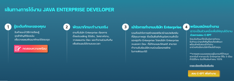 กระบวนการวัดระดับความพร้อมในการทำงาน ที่จะช่วยให้คุณได้เข้าใจระดับทักษะปัจจุบันของคุณเองต่อทิศทางการได้งาน Java Developer ได้อย่างลึกซึ้งขึ้น พร้อมทั้งคำแนะนำในการพัฒนาทักษะที่จำเป็นเพื่อให้คุณถึงเป้าหมายการได้เข้าทำงานเป็น Java Developer ได้เร็วที่สุดอีกด้วย จากทีมงานผู้มีประสบการณ์จริงด้านพัฒนา Software ระดับ Enterprise Business