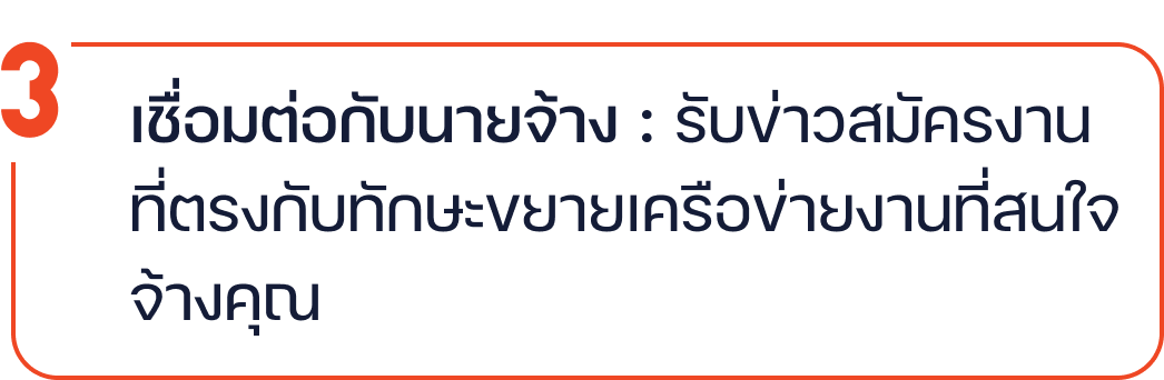 - ช่วยเชื่อมต่อกับบริษัท Tech และ Partner ระดับ Enterprise คัดเลือกนายจ้างที่ต้องการ