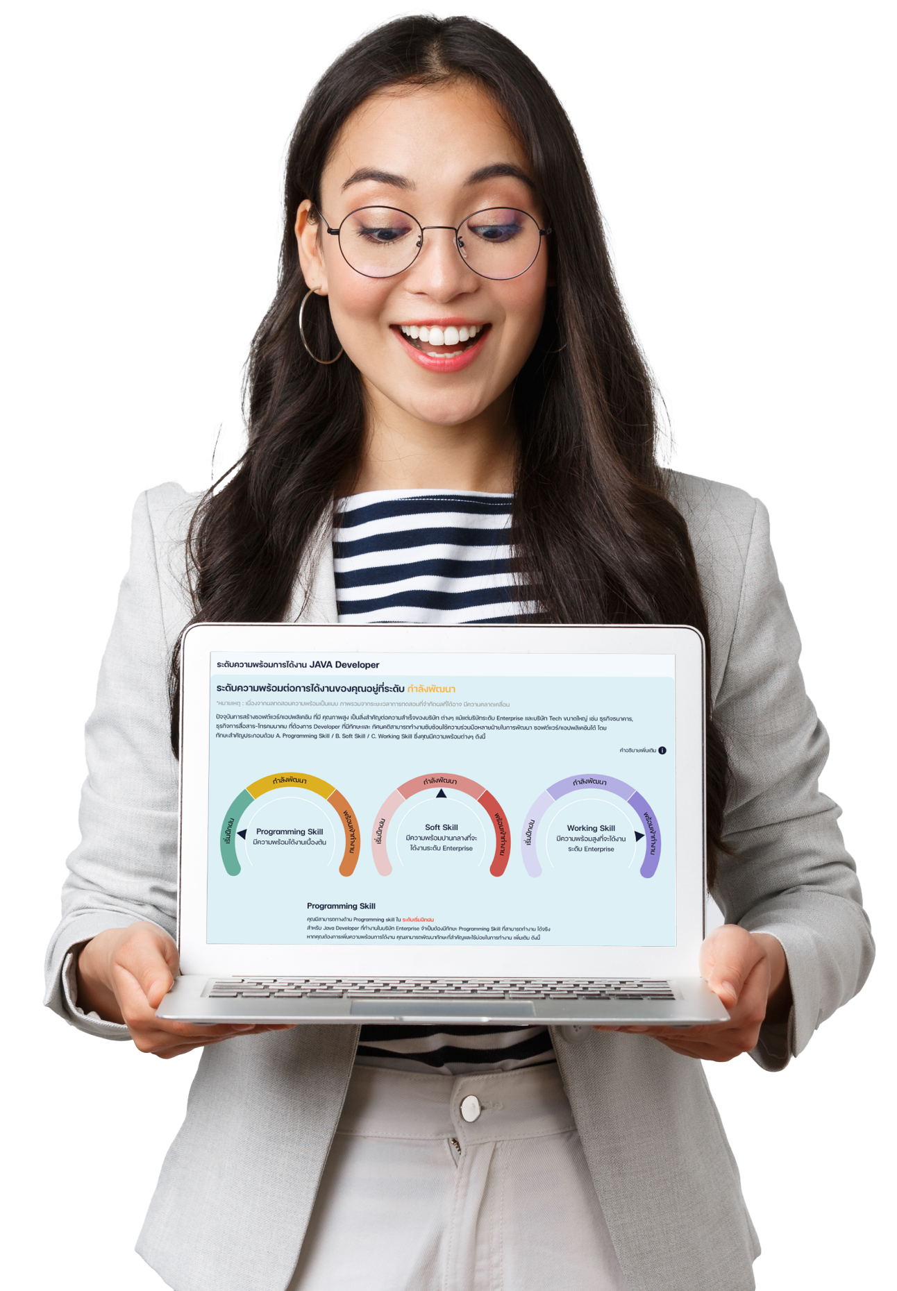 - ผลทดสอบเฉพาะบุคคล ช่วยคุณกำหนดทิศทางที่ชัดเจนเป็น แผนพัฒนาทักษะ ที่สิ้นที่สุด