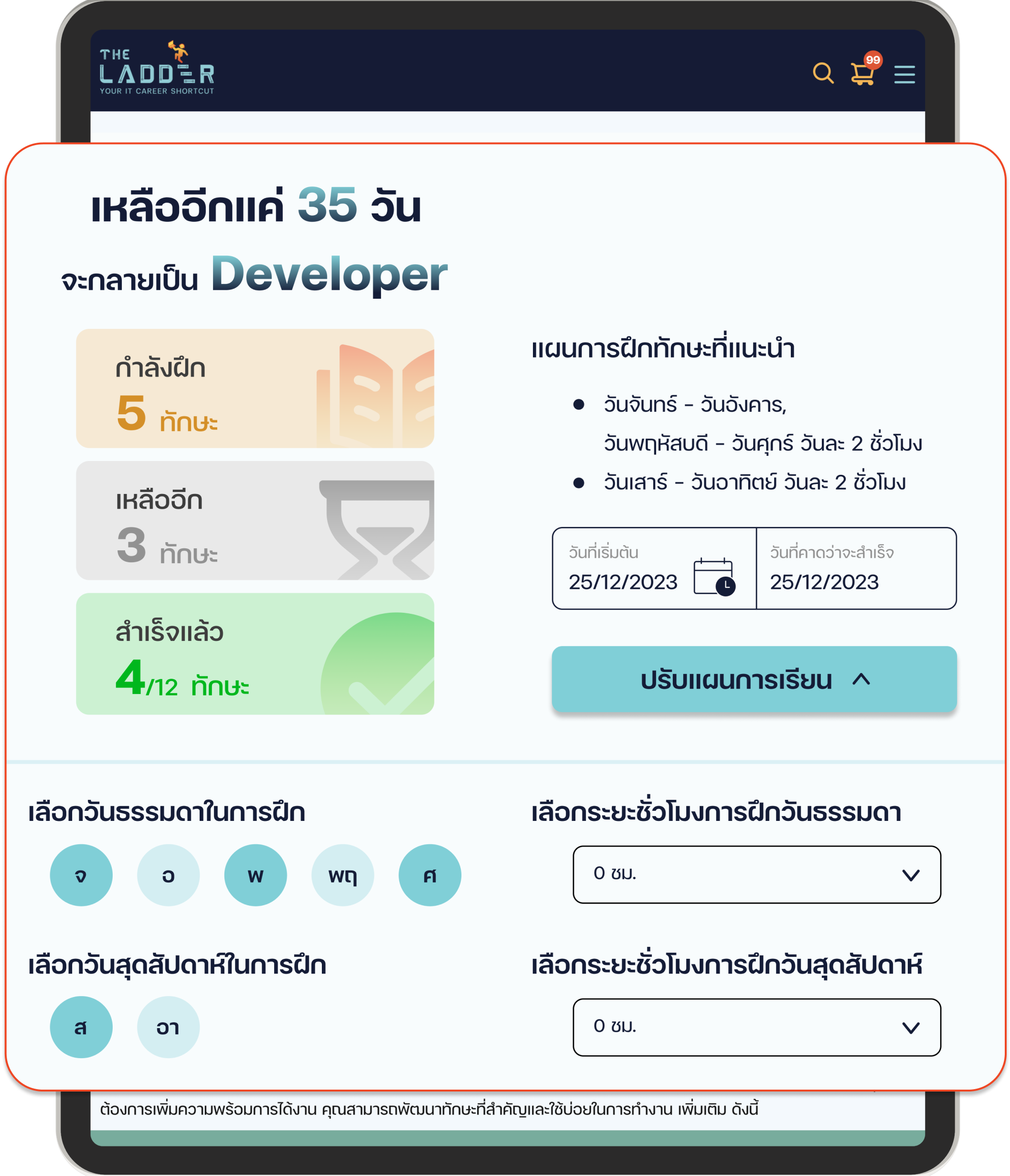 คุณสามารถปรับแต่งช่วงเวลาในแผนพัฒนาทักษะให้เหมาะสมกับเวลาของคุณ และเมื่อวางแผนแล้ว แต่มีเหตุให้พัฒนาไม่ได้ตามแผน คุณก็สามารถปรับแผนให้เหมาะกับสถานการณ์ปัจจุบันได้อยู่เสมอ