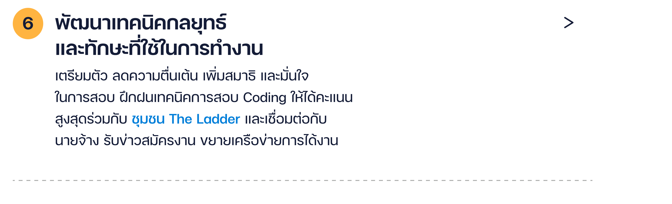 สร้างโอกาสสูงสุด ผ่านบริการ The Ladder – Head Hunter ที่มีเครือข่ายกว้างเชื่อมต่อกับบริษัท Tech ชั้นนำ และ Partner ระดับ Enterprise พร้อมสร้างโอกาสจ้างงานให้คุณเพียงเริ่มต้นเรียนกับเรา