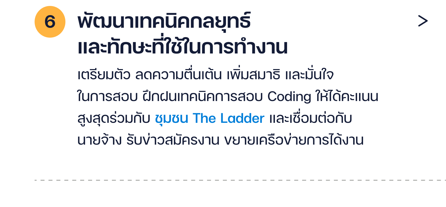 เข้าใจความคาดหวังนายจ้าง ต่อการจ้างงาน เข้าใจการเข้าร่วมงานกันอย่างไรให้สามารถ ผลิตผลงานได้ดี ที่มากไปกว่านั้นที่ The Ladder สนับสนุนเพิ่มโอกาสได้งานของคุณครบทุกด้าน ให้คุณได้เรียนรู้กลยุทธ์ เทคนิคสร้าง Resume & Portfolio ตรงจุดที่นายจ้างอยากเลือก