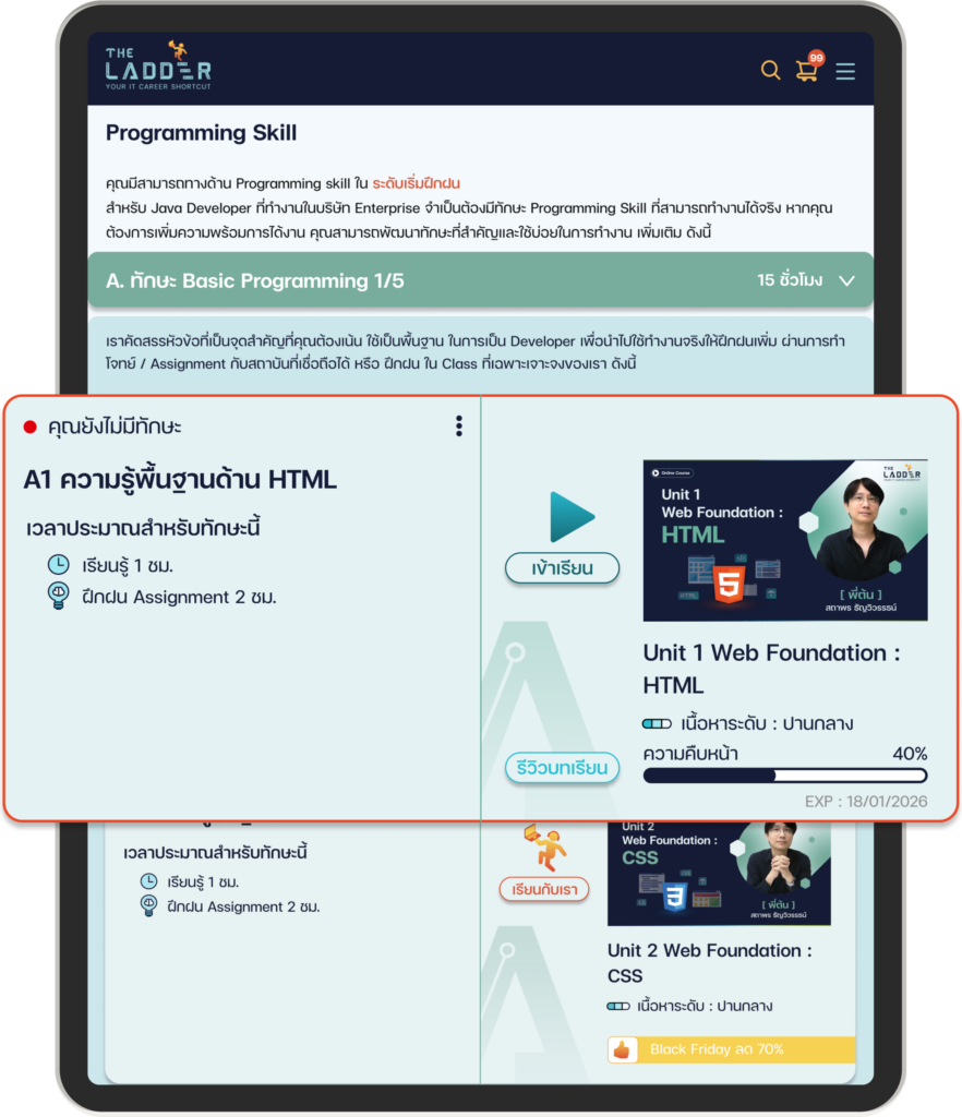 สู่เส้นทางนักพัฒนาโปรแกรมมืออาชีพภายใน 115 ชั่วโมง! “The Ladder”หลักสูตรเข้มข้นออกแบบมาเพื่อให้คุณเป็นโปรแกรมเมอร์มืออาชีพได้ ใช้เวลาเพียง 1-2 ชั่วโมงต่อวัน ก็เป็นโปรแกรมเมอร์ได้
